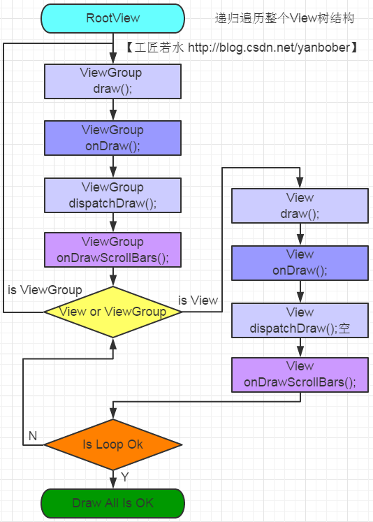 ViewGroup,则需要递归绘制其所包含的所有子View。 -