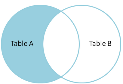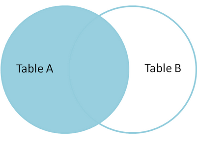 如果想只从左表(A)中产生一套记录,但不包含右表(B)的记录,可以通过设置where语句来执行,如下: