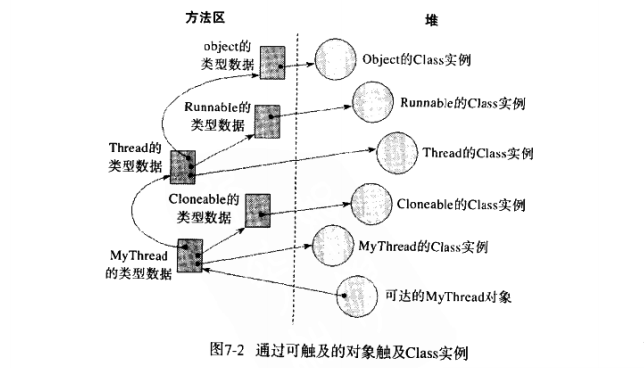 Class实例的明确引用。 - 如果在堆中还存在一个可触及的对象,在方法区中它的类型数据指向一个